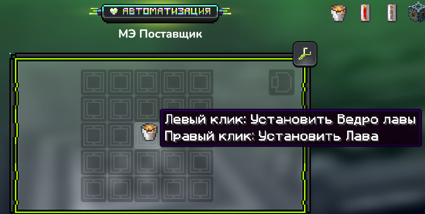 Чтобы подать жидкость в шину экспорта необходимо взять ведро/бак с жидкостью и нажать ПКМ по ячейке.