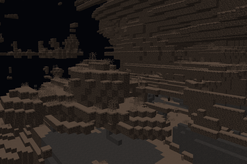 Мортум состоит из огромных шарообразных пробоин, напоминающих пещеры, которые представлены уникальными чёрными блоками: земли, травы, руды, камня, древесины и листвы. Там очень мощные мобы.&#x20;